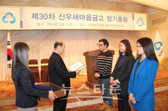 한편 신우새마을금고는 2012년 2013년 2년 연속 경영등급 1등급 대전·충남 우수 금고로,지난 1987년부터 28년간 중·고·대학생 629명에게 1억7465만원의 장학금을, 지역사회환원사업과 좀도리운동으로 복지지원비 등 4억7000만원을 지원했다.