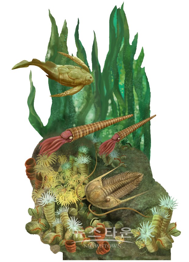 한편 대기 중이나 바다 속에 산소가 풍부해지고 오존층이 형성되어 자외선이 어느 정도 차단되자 최초로 공기로 숨을 쉬는 노래기(millipede), 지네(centipede)와 같은 다족류(多足類, Myriapod), 거미(spider)나 전갈(scorpion)과 같은 거미류(Arachnid), 날개 없는 원시적인 곤충(昆蟲, insect/hexapod)들인 무시류(無翅類, Apterygota) 등의 절지동물들이 땅 위로 올라왔으며 환형동물인 지렁이와 선형동물인 선충류(線蟲類, nematode: 동식물에 기생하는 대부분의 기생충이 여기에 포함되나 자유로운 생활을 하는 종류도 있음)도 이 시기에 지상으로 올라왔을 것이다.