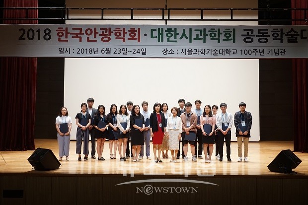 국제대학교 안경광학과(학과장 정연홍 교수) 학생들이 지난 23일 토요일 서울과학기술대학교 백주년기념관에서 개최된 ‘2018 한국안광학회·대한시과학회 공동학술대회’에 참석했다.
