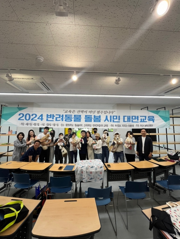 부산시, 반려동물 단체 '이유 있는 동물 동행', 부산일보, 동명대학교가 손을 잡은 상반기 '2024 반려동물 돌봄 시민교육'(이하 돌봄교육)이 지난 주말 막을 내렸다.