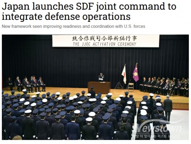 일본의 육해공 자위대 지휘를 통합한 “통합작전사령부”(Joint Operations Command)가 24일 공식 출범했다.