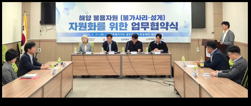한국수산자원공단 동해본부와 강원특별자치도, 강릉시, 민간기업이 4월 21일 해양 불용자원을 활용한 자원화 사업 추진을 위한 업무협약을 체결했다. 연안에 대량 발생해 어업 피해를 유발하던 불가사리를 친환경 제설제와 비료로 전환하는 순환형 모델 구축이 핵심이다.
