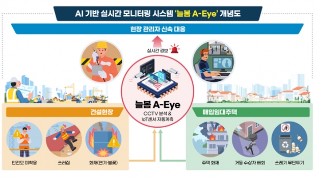 한국토지주택공사(LH)가 인공지능 기반 실시간 모니터링 시스템 ‘늘봄 A-Eye’를 구축하고 본격 운영에 들어갔다. 건설 현장과 임대주택을 동시에 관리하는 통합 안전관리 체계로, 단순 사후 대응이 아닌 ‘사전 예방’ 중심으로 구조를 바꾼 것이 핵심이다. 그동안 건설현장 안전관리는 사람이 직접 확인하거나 사고 발생 이후 대응하는 방식이 많았다. 하지만 현장이 넓고 인력과 장비가 동시에 움직이는 환경에서는 모든 위험을 실시간으로 파악하기 어려웠다. 이런 한계를 보완하기 위해 AI 기반 감지 시스템이 도입된 것이다.