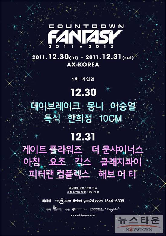 지난 10월 22일~23일 양일간 4만 5천명을 동원하며 화려하게 막을 내린 ‘그랜드 민트 페스티벌 2011’의 뜨거웠던 열기가 연말까지 이어질 것으로 보인다. 다름 아닌 겨울 페스티벌 ‘카운트다운 판타지 2011-2012’(이하 CDF)의 개최 소식과 1차 라인업이 발표됐기 때문이다.