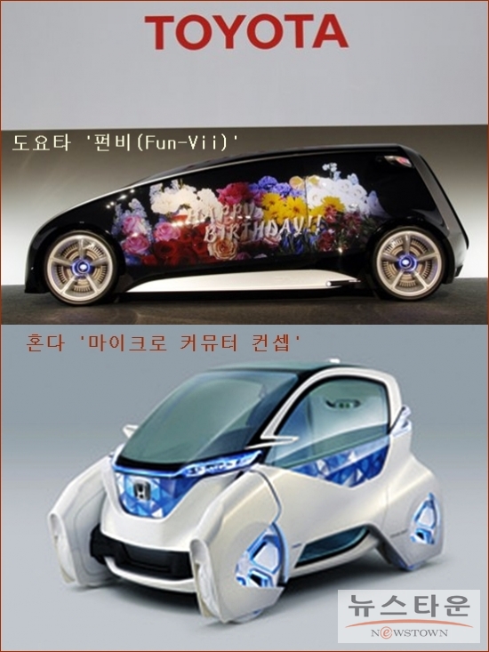 일본의 도요타 자동차는 28일 도쿄 모터쇼 개막에 앞서 스마트폰에서 전송된 영상을 차 안에서 볼 수 있게 제작된 미래형 자동차 ‘펀비(Fun-Vii)’를 처음 공개했다.