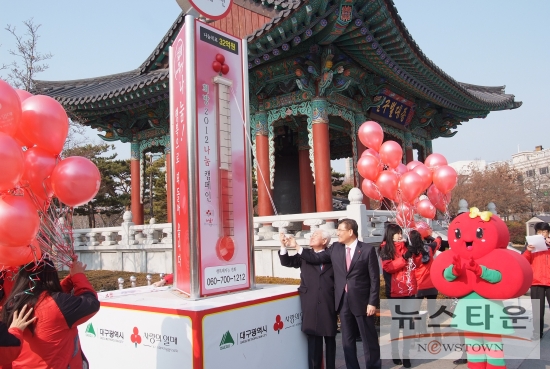 1월 31일(화) 오전 11시, 국채보상기념공원 종각옆에서 조해녕 대구공동모금회 회장을 포함한 임직원 및 실무팀이 참석한 가운데 희망2012나눔캠페인 모금목표 달성식을 가졌다.