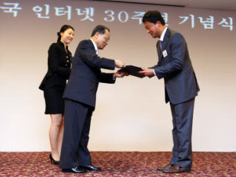 ‘인터넷 30주년’ 주관 기관인 한국인터넷진흥원은 5월 30일 오후 5시부터 8시까지 세종회관 세종홀에서 행사를 마련하고 기념식과 공로자 시상식을 진행 했다. ‘인터넷 30주년’ 기념식에는 김황식 국무총리와 이계철 방송통신위원장을 비롯한 인터넷 분야의 산ᆞ학ᆞ연ᆞ관 관계자 200여명이 참석한 가운데 인터넷 발전과 관련한 각계의 공로자 7명에 대한 시상식이 있었다. 이기형 회장은 방송통신위원장 표창 ‘인터넷 30주년 공로상’을 수상했으며 카이스트 전길남 교수, 서울대 최양희 교수, NC소프트 김택진 사장, 카카오톡 김범수 의장도 수상의 영광을 함께 했다.