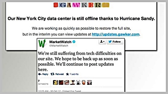 FCC 관리들에 따르면, 버지니아에서 매사추세츠주에 이르는 10개 주 158개 카운티의 이동통신 기지국 가운데 약 25%가 불통인 상태이며, 샌디 영향권에 든 지역의 25% 주민들은 케이블 TV나 케이블 인터넷에도 접속하지 못하고 있다.