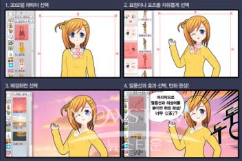 이 외에도 사용자가 가지고 있는 이미지를 제작 만화에 삽입할 수 있는 등 동일한 툴을 사용하더라도 이용 방법에 따라 개성적인 콘텐츠 생성이 가능하다.