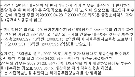 최소한, 매매 등 금원이 오가는 거래에서 특히 공익법인의 거래일 경우 “사실여부확인”은 법인장부에서 밝혀집니다. 학교법인 현강학원 “현금출납부만 살펴보아도 매매가 아니고 사채행위로 부동산을 갈취했는지의 여부를 확인”할 수 있습니다. 따라서 현강학원의 장부를 감사했기에 서울교육청주무관서나 감사부서가 한결같이 “현강학원의 불법”을 지적했던 것입니다.