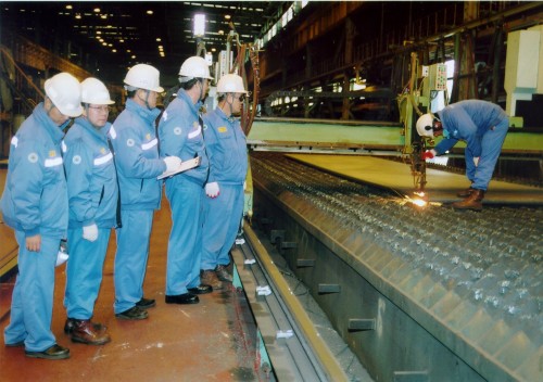^^^▲ 2후판공장 가스 절단장에서 가스 절단작업 경진대회를 열고있다.