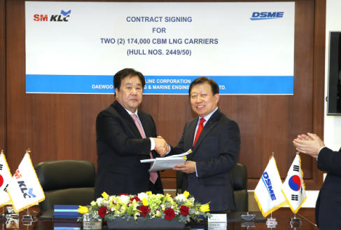 지난 21일 대우조선해양 서울 본사에서 열린 계약식에는 대우조선해양 고재호 사장과, 선사 측에서는 각각 대한해운 우오현 회장 (SM 그룹), 현대LNG해운 이갑재 대표이사가 참석했다.