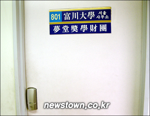 | ^^^▲ 사무실 문 앞'부천대학 서울사무소' '몽당장학재단'이라는 글씨가 선명히 찍혀 있다 ⓒ 뉴스타운 이창훈 ^^^ | ||
