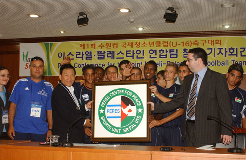 지구촌 분쟁지역 중 가장 첨예한 대립과 갈등을 빚고 있는 이스라엘과 팔레스타인의 청소년으로 구성된 혼성 축구팀인 ‘페레스 평화센터’유소년 축구클럽이 '제1회 수원컵 국제청소년클럽 축구대회'에 참가하기 위해 수원에 왔다. (사진)