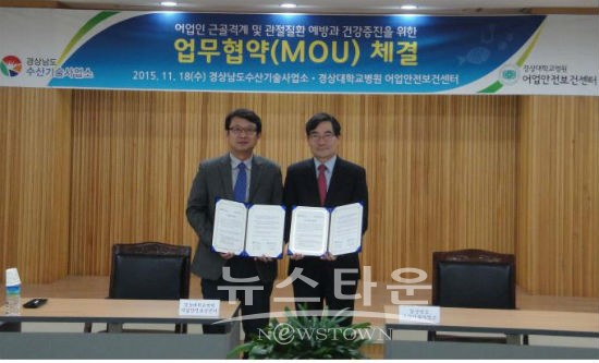 경상남도수산기술사업소와 경상대학교병원 어업안전보건센터는 근골격계 및 관절질환 예방과 체계적 건강증진 관리체계 구축을 위한 업무협약을 18일 체결했다.