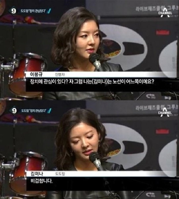 지난달 방송된 팟캐스트 '이봉규의 밑장빼기'에서는 정치에 관심이 많다고 말하는 김미나 씨의 모습이 그려졌다.