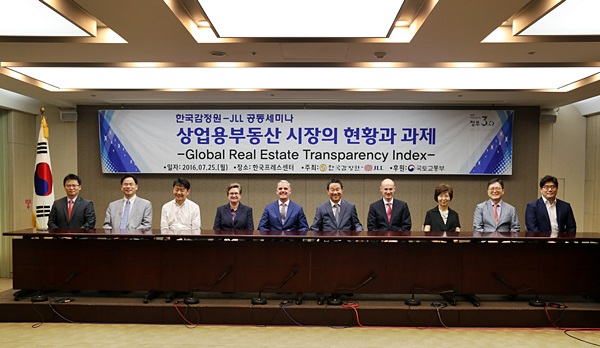한국감정원(원장 서종대)은 JLL(Jones Lang LaSalle)과 25일 한국프레스센터에서 상업용부동산 시장의 현황과 과제라는 주제로 공동세미나를 개최하였다.