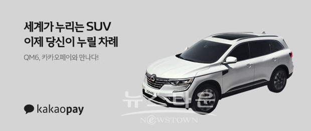 카카오페이를 통한 자동차 청약금 결제는 르노삼성이 새로 출시한 'QM6'에 첫 적용되며, 구매 희망 고객은 2일부터 QM6 마이크로사이트를 통해 청약금 결제를 진행할 수 있다. 이후 고객이 선택한 지역의 르노삼성 판매점을 통해 다음 절차가 진행된다.