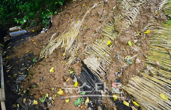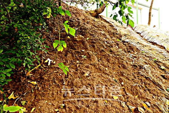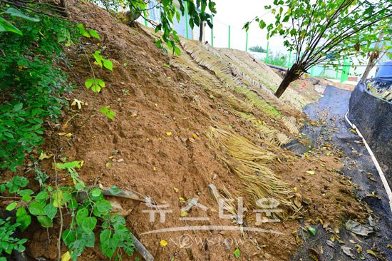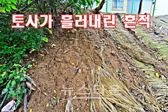 ▲ 물과 흙이 흘러 내리지 않도록한 조치가 너무 부실하다 ⓒ뉴스타운