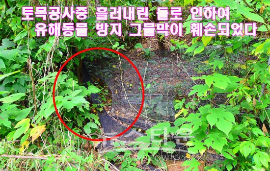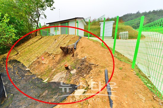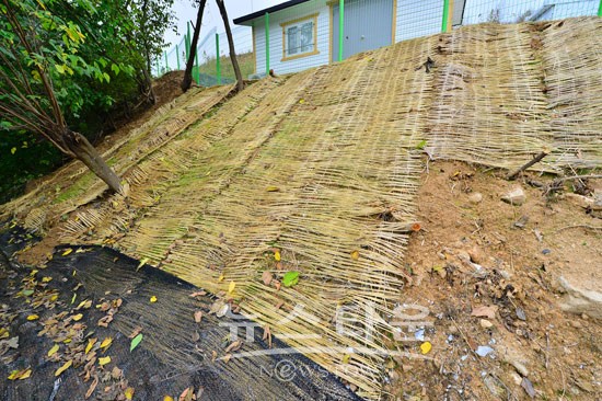 ▲ 토사유출방지 시설을 한 장면. 너무 부실하다. ⓒ뉴스타운