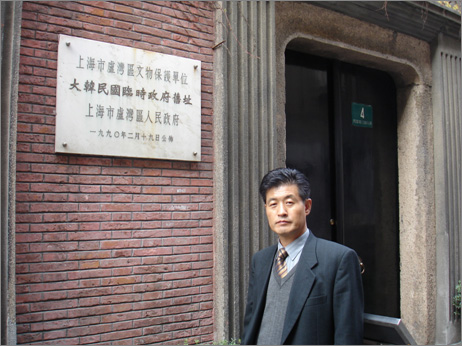 | ^^^▲ 상해임시정부 전시관입구 건물번호판 앞에서 포즈를 취한 필자 ⓒ 뉴스타운^^^ | ||