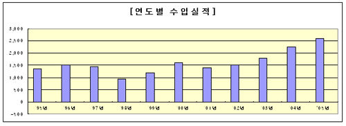| ^^^▲ 연도별 수입실적 ⓒ 뉴스타운 문형식^^^ | ||