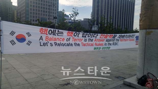 이두호 상임대표는 영어로 한국에 전술핵을 다시 설치해야 하는 이유와 필요성에 대해서 연설했고 손옥선 행주치마 의병대 대변인이 한글로 낭독했다.