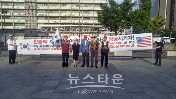 핵무장국민연합(상임대표 이두호 전 육사구국동지 회장)은 오늘(8일) 오후 5시 종로구 미국대사관 앞에서 기자회견을 가졌다.