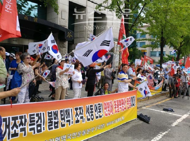이계성 반국가 교육척결 국민연합 공동대표는 “삼성의 더케이 미르재단에 대한 지원은 공익적이고 합법적임에도 특검이 억지로 박근혜 전 대통령과 이재용 부회장 간의 뇌물죄로 하는 것이 조작임이 진재수 전 과장의 진술서에서 명백히 밝혀졌는데도 언론과 방송이 이런 사실을 보도 안하다니 기가 막힌다”며 “이런 특검의 증거 조작에 대해 법원은 양심적으로 바른 판결을 해야 국민적인 저항을 면할 것”임을 천명했다.
