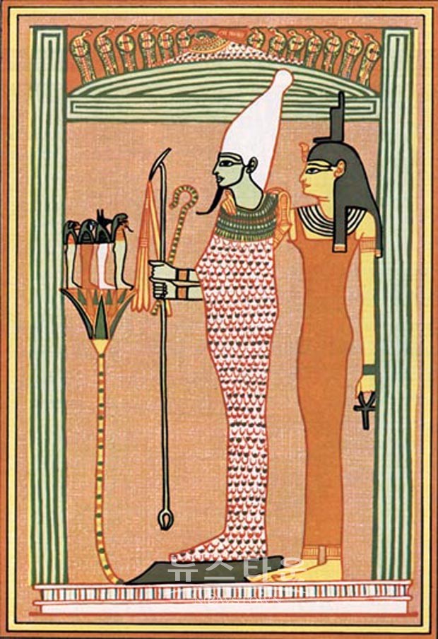 이어 오시리스는 이시스와 결혼하였으며 땅을 풍요롭게 다스려 식량이 넉넉히 생산되도록 하였는데 네프티스와 결혼한 악(惡, evil)의 신 세트가 형을 시샘하여 죽였다. 그러자 이시스와 네프티스는 오시리스의 시신을 찾아내어 다시 살린 후 아들 호루스를 낳았으며 세트의 아내인 네프티스 역시 오시리스와의 사이에 장의(葬儀, funeral)의 신인 아들 아누비스(Anubis)를 낳았다. 세트는 부활한 오시리스를 다시 찾아 죽였고 오시리스의 아들 호루스와 세트는 격렬한 싸움을 벌인 끝에 세트가 패하여 사막으로 쫓겨났으며 호루스는 파라오들의 수호신이자 이집트 번영의 보호자가 되었다.