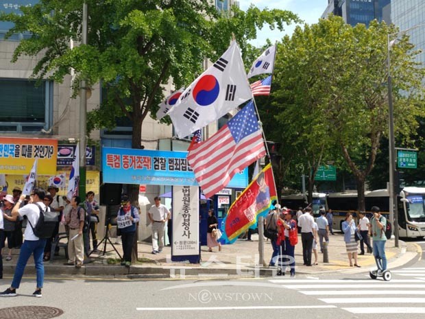 이재용 삼성 부회장의 1심 선고 D-Day 인 금일 법원 앞은 "이재용은 무죄다, 무죄판결석방하라"라는 태극기 애국국민들의 목소리가 울려 퍼지고 있다.