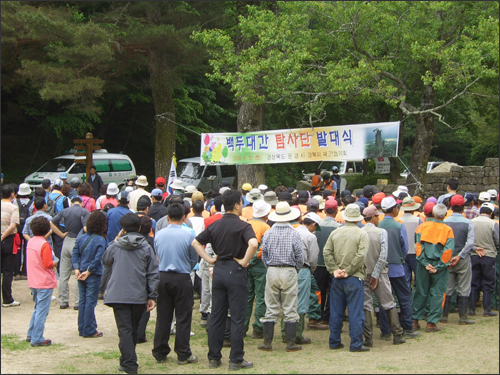발대식을 마친 후 탐사대원 50명은 조령 제3관문에서 시작하여 이화령까지 백두대간 8km 구간을 탐사하면서 희귀식물 훼손, 병해충 발생상황, 등산로 토사유실 등 백두대간의 훼손실태를 조사하게 된다