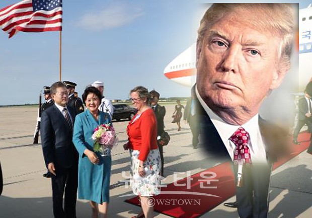 트럼프가 오라 했는지 김정은이 가라 시켰는지 알 순 없지만 문재인은 5월 22일, 허겁지겁 트럼프에 달려갔습니다. 공항에서는 미국 가정의 부엌에서나 어울릴 수 있는 꽃치마에 빨간 세타를 입은 무명의 의전장 대리의 영접(?)을 받았고, 그의 처 김정숙은 펜스부통령 부인이 동행자 없이 마지못해 제공한 점심을 먹었습니다. 부부가 다 귀찮은 불청객이었습니다. 한국대통령, 기자회견의 도구로만 이용당했고, 전 세계가 지켜보는 가운데 노골적으로 조롱과 멸시를 당했습니다.