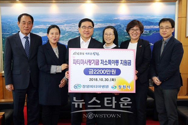 창원시가 10월 30일 오후 4시 30분 허성무 창원시장과 창원파티마병원 박정순 병원장, 창원시지역아동센터연합회 이영희 회장 등이 참석한 가운데 저소득아동 지원을 위한 기탁식을 가졌다.