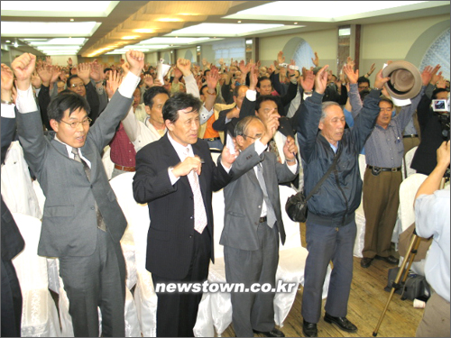 ▲ 이날 시스템21(가칭)창당발기인대회는 대회 참가자들이 일제히 일어나 "만세삼창"을 외치는 것으로 마무리 됐다.