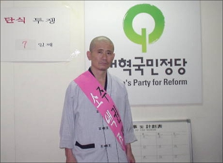 에어컨도 없는 좁은곳에서 바람을 일으키는 유일한 수단인 선풍기 하나로 맨바닥에 비닐 돗자리를 깔고 앉아 단식투쟁하고 있는 본인의 처지가 한편으로는 처량해 보입니다.
