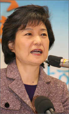 우리의 지도자를 선택하는 기준 역시, 중요한 것은 여성이냐 남성이냐가 아니라, 어떤 국가관을 가지고 있느냐, 얼마만큼의 애국심을 가지고 있느냐가 기준이 되어야 한다고 생각합니다. 여러분이 아시다시피, 저한테 남은 것은 나라와 국민밖에 없습니다. 오직 나라와 국민을 위해 제 한 몸 바치겠다는 마음 하나만 가지고, 결연한 용기를 가지고 나아가겠습니다.