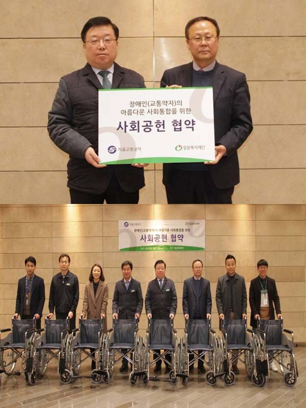 밀알복지재단(이사장 홍정길)이 13일 서울교통공사 9호선 운영부문(운영부문장 정일봉)에 휠체어를 기부하고, 교통약자의 이동권 보장과 장애인의 사회통합을 위한 업무협약을 체결했다.