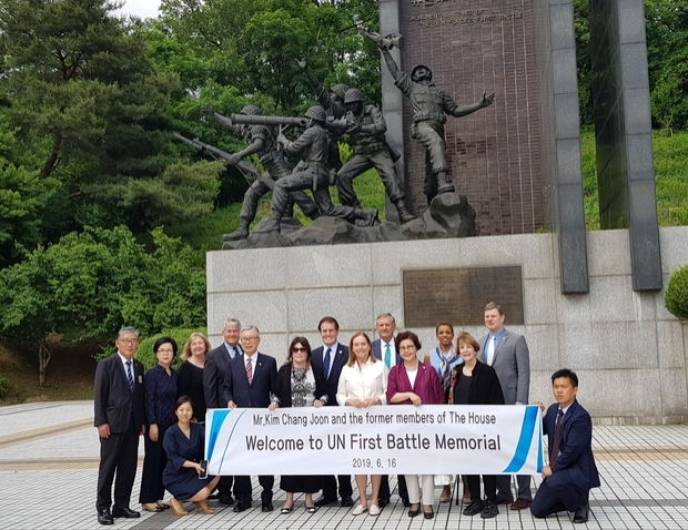루이스 페인 주니어(前민주당, 버지니아) 前미연방하원의원 일행 13명이 김창준 미래한미재단 이사장 내외와 함께 16일 유엔군초전기념관(관장 이규준)을 방문해 죽미령전투에 대한 전시를 관람하고 이어 유엔군 초전기념비와 죽미령 유엔초전기념 평화공원 조성사업 현장을 둘러보는 등 뜻깊은 시간을 가졌다.