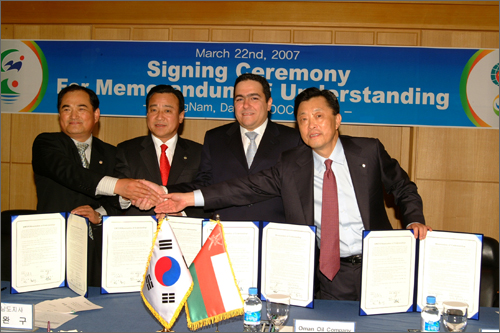 | ^^^▲ 22일 서울 인터컨티넨탈 호텔에서 충남도와 오만 국영석유공사가 양해각서를 체결했다.^^^ | ||
