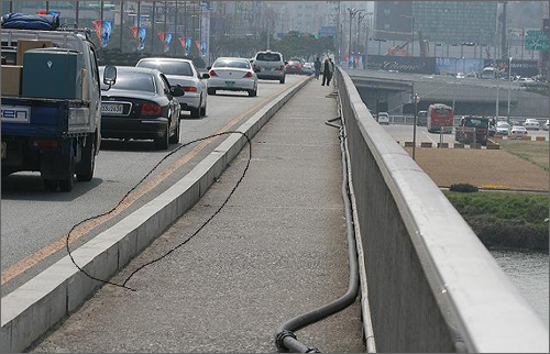 | ^^^▲ 태화교가 교각기초 부실공사로 교량상판이 침하되고 있다^^^ | ||