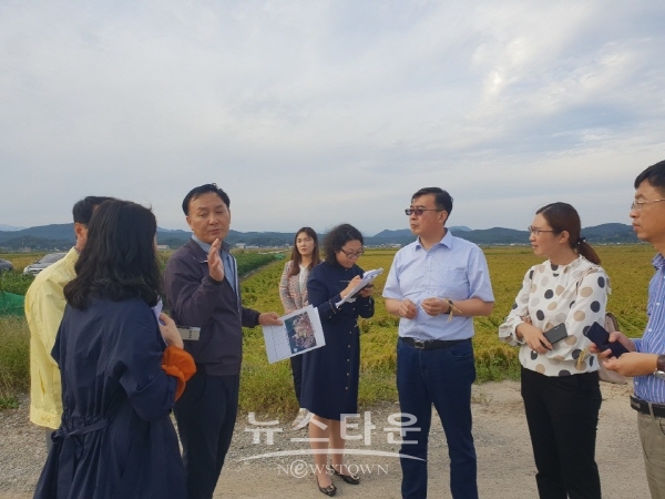 칭양구 대표단은 첫날 금성면 갈사만 간척지와 해양플랜트연구원을 견학한 후 다음 날 군수 집무실을 찾아 윤상기 군수와 좌담회를 가졌다.