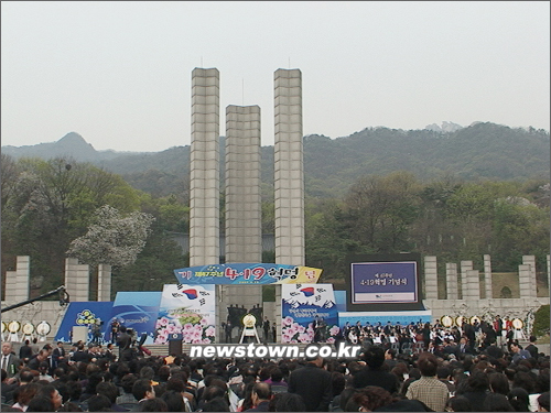 | ^^^▲ 제47주년 4.19혁명기념식19일 오전, 국립4.19민주묘지에서 열린 '제47주년 4.19혁명기념식' 전경 ⓒ 이광윤 보도국장^^^ | ||