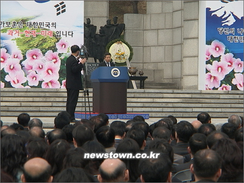 | ^^^▲ 노무현 대통령 '기념사'19일 오전, 국립4.19민주묘지에서 열린 '제47주년 4.19혁명기념식' ⓒ 이광윤 보도국장 ^^^ | ||