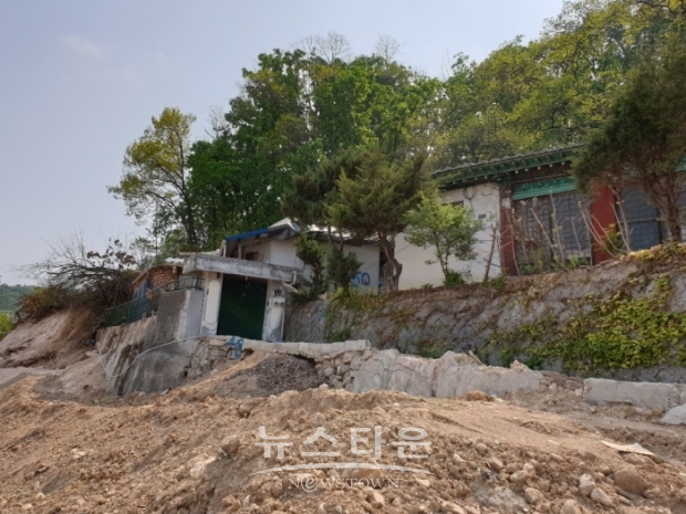 이런 상황에서 정비사업구역 경계인 산비탈에에 위치한 사찰과 주택 1채의 도로가 철거 등으로 파헤쳐지면서 토사유출 등의 문제가 제기되고 있다.