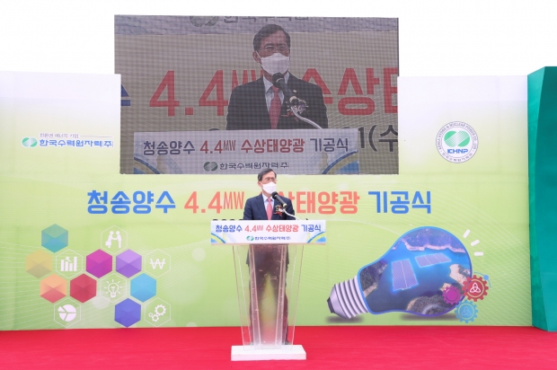 같은 날 한수원은 청송양수발전소 하부저수지에 4.4㎿급 수상태양광발전소를 건설하기로 하고, 발전소 인근에서 기공식을 열었다. 기공식에는 정재훈 한수원 사장을 비롯해 윤경희 청송군수, 서정표 한화솔루션 전무 등이 참석했다.