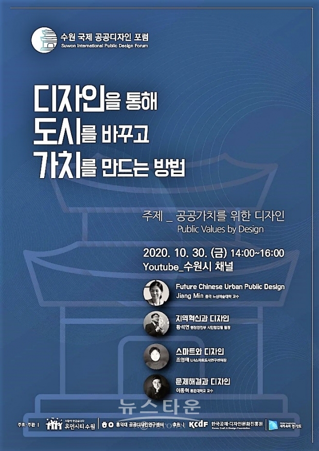 경기도 수원시는 홍익대 공디자인연구센터와 공동으로 오는 30일 오후 2시부터 수원 컨벤션센터에서 '2020 국제공공디자인포럼'을 수원시 유튜브 채널로 온라인 중계한다고 26일 밝혔다.