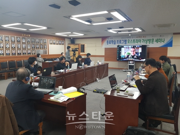경남 진주시와 세계지방정부연합(이하 UCLG)의 파일럿 도시 동료학습 프로그램의 활동인 오스트리아 가상방문 세미나가 ‘진주와 오스트리아 도시 문화정책과 지역의 지속 가능한 발전’이라는 주제로 5일 오후 5시부터 진주시청 상황실에서 온라인 화상 세미나(웨비나) 형식으로 개최됐다.
