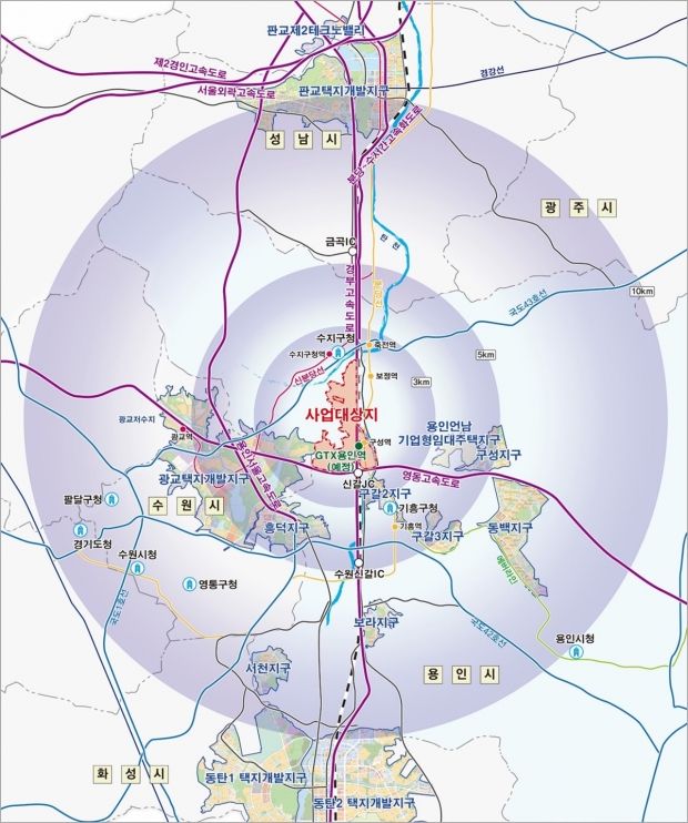 경부고속도로와 영동고속도로가 교차하는 신갈JC에 위치한 경기용인 플랫폼시티는 GTX-A노선(용인역) 개통에 따라 서울의 주요 업무지구(강남, 삼성 등)의 접근성이 향상될 예정이며, 복합환승센터, 지식기반첨단산업, 상업, 주거 등의 다양한 기능을 도입할 계획이다.