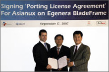 이번 계약은 이제네라 사의 블레이드 서버를 공급받는 CJ시스템즈가 한컴의 ‘아시아눅스’를 탑재한 블레이드 서버의 국내 공급을 담당하는 것으로 3개사 간의 블레이드 서버 적용, 공급에 대한 상호간의 기술이전과 공동 마케팅 진행이 주요 골자다.